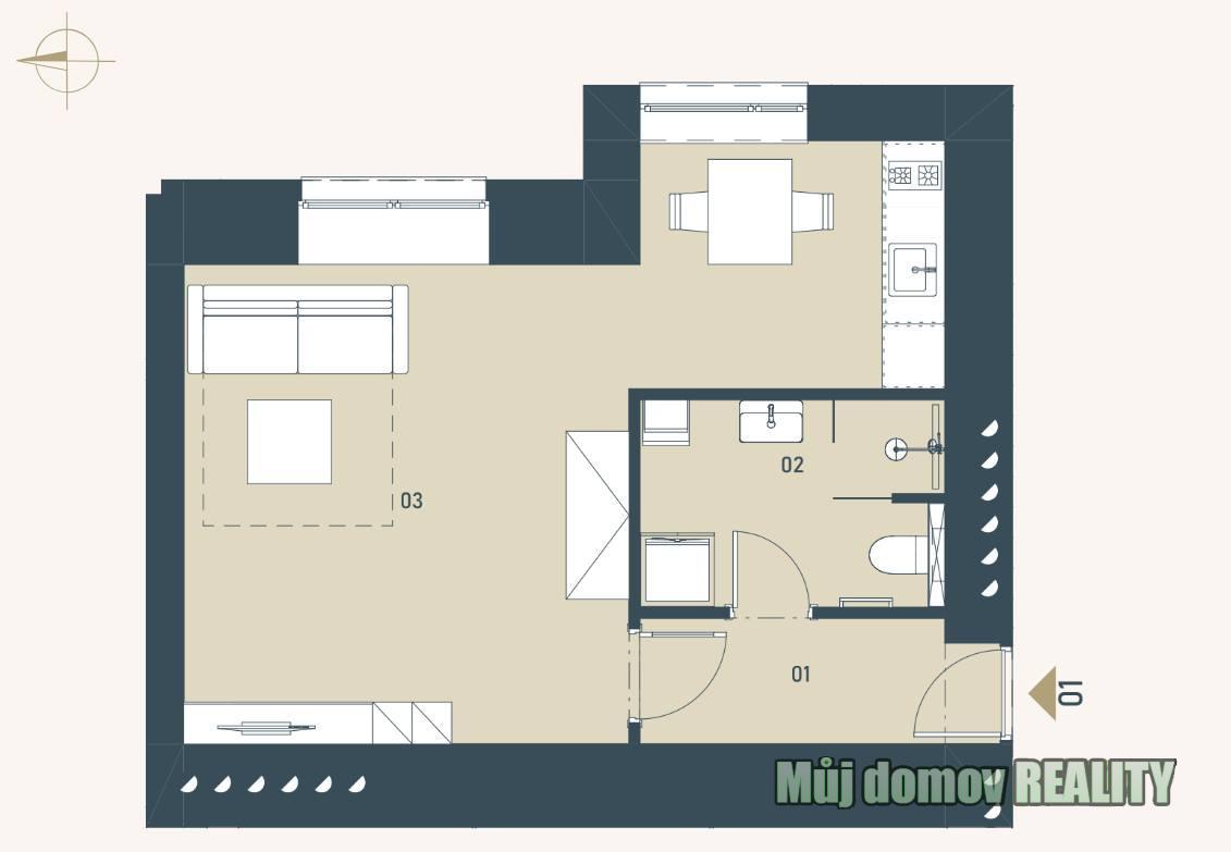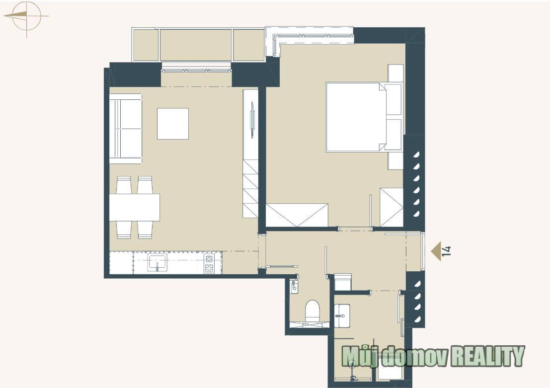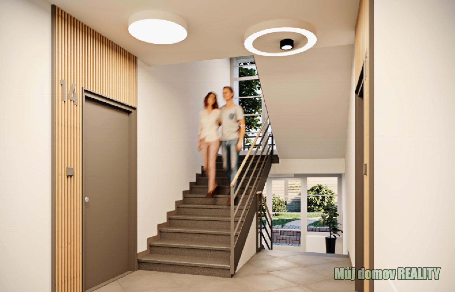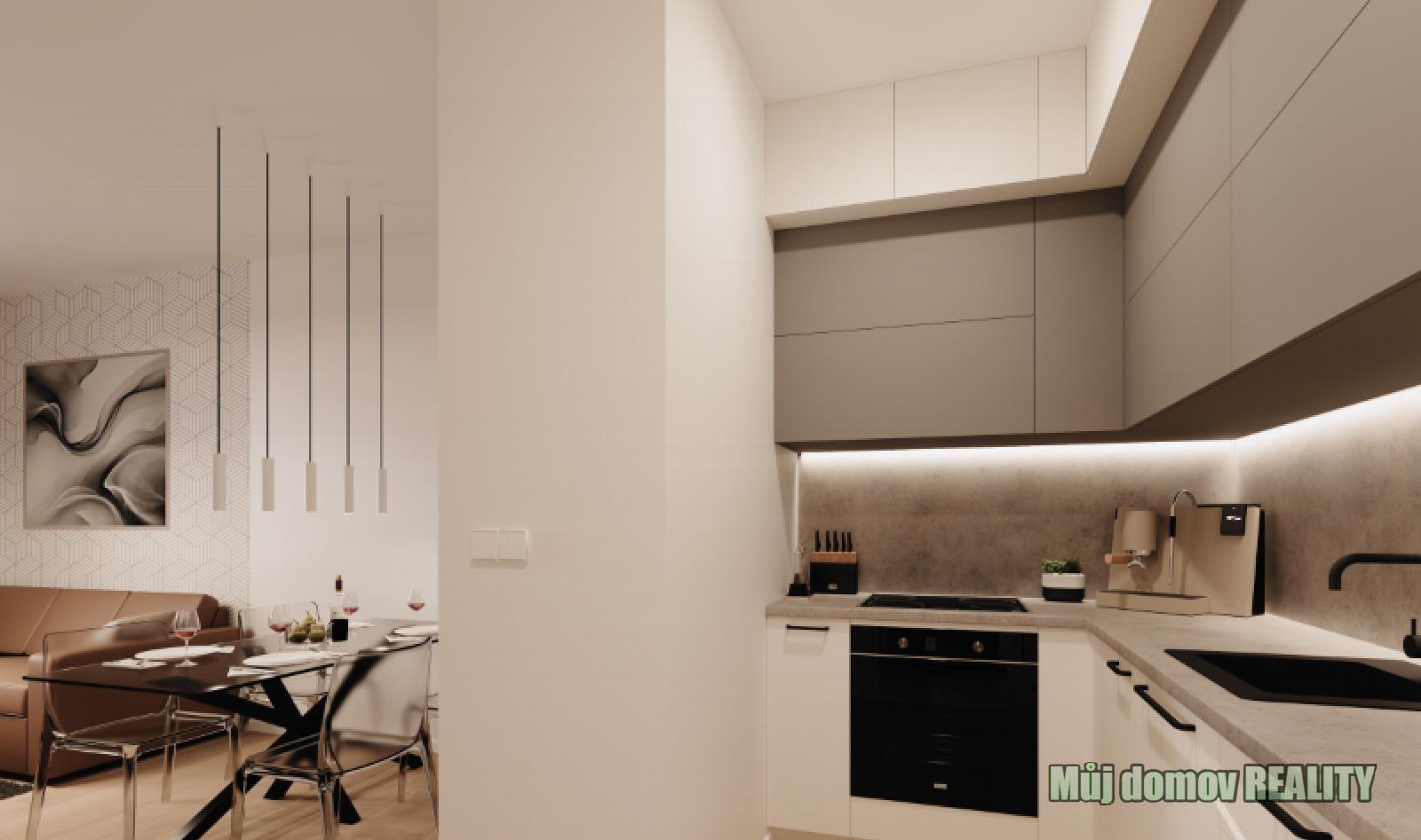 * provedení **fit-out** (moderní koupelna, příprava na kuchyňskou linku)