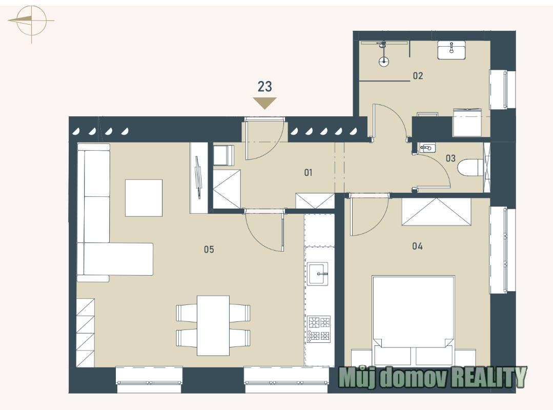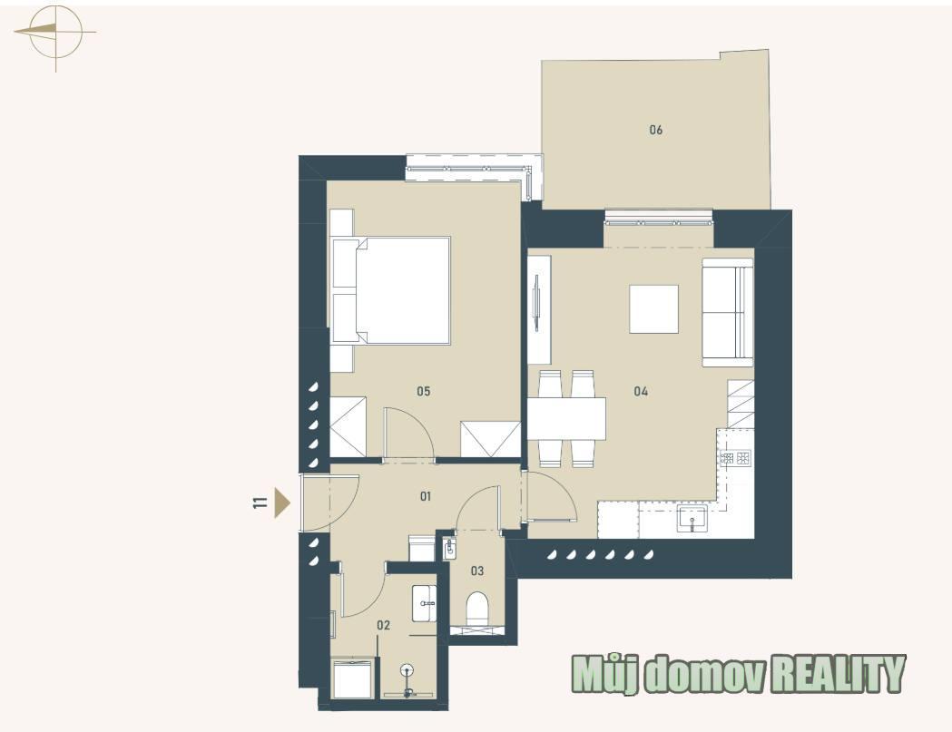 ### 2+kk, 58 m + terasa 9,8 m **1. podlaží**