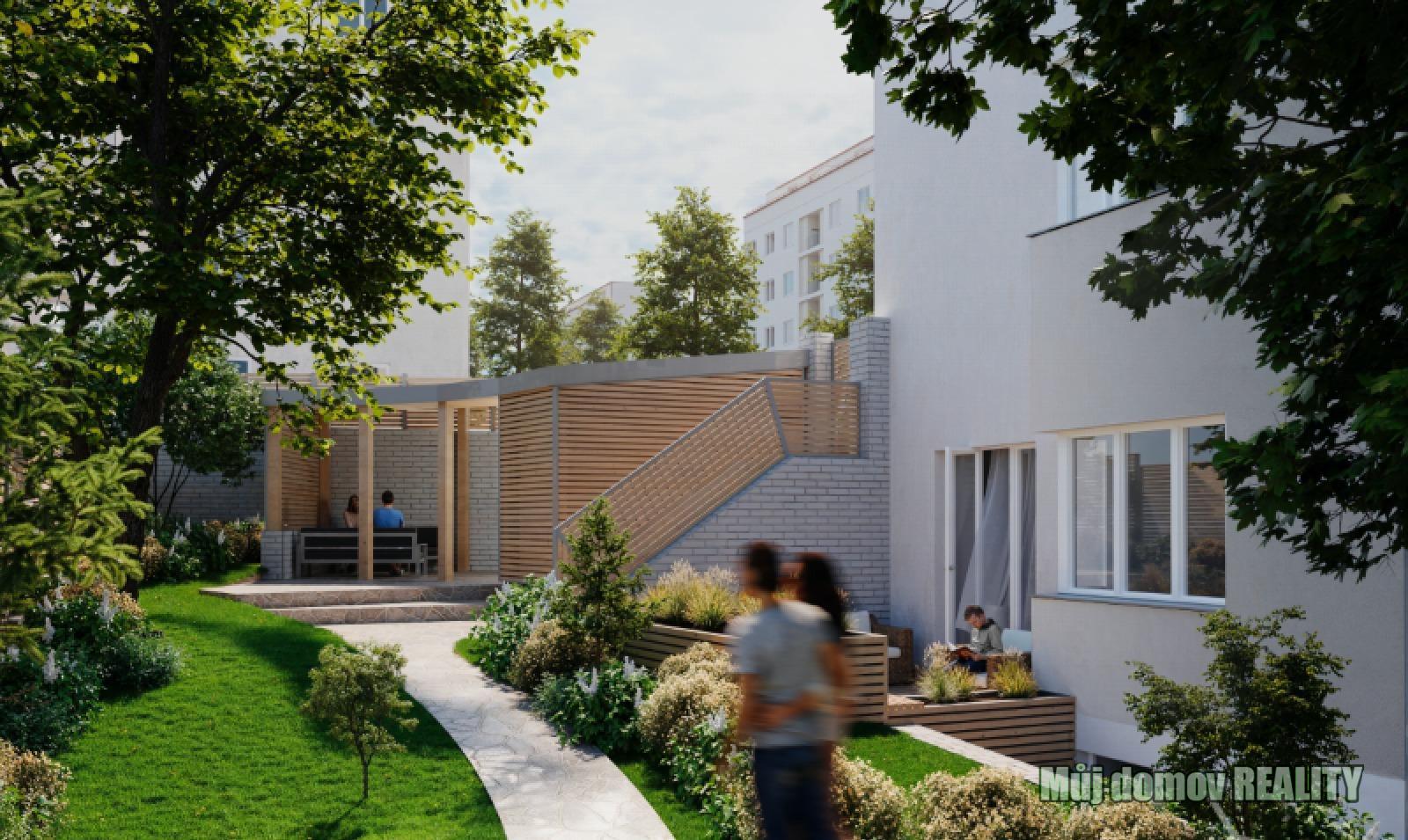 * upravený **vnitroblok s klidovou zónou, posezením a grilem**
