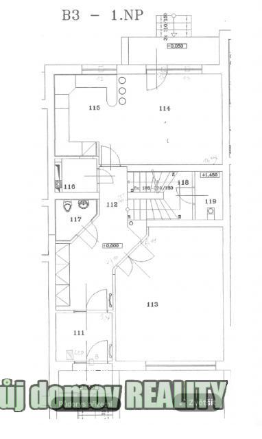V domě naleznete 4 nadzemní podlaží: snížené přízemí, které má 2 neprůchozí místnosti s okny a oddělené WC. Dále je zde sprchový kout v technické místnosti (kotelna), kde je umístěn plynový kondenzační kotel a elektrický bojler. K dispozici je též prádelna, pokoj vhodný jako kancelář, kumbálek pod schody a garáž pro 2 automobily, kde je umístěno umyvadlo a technická místnost.