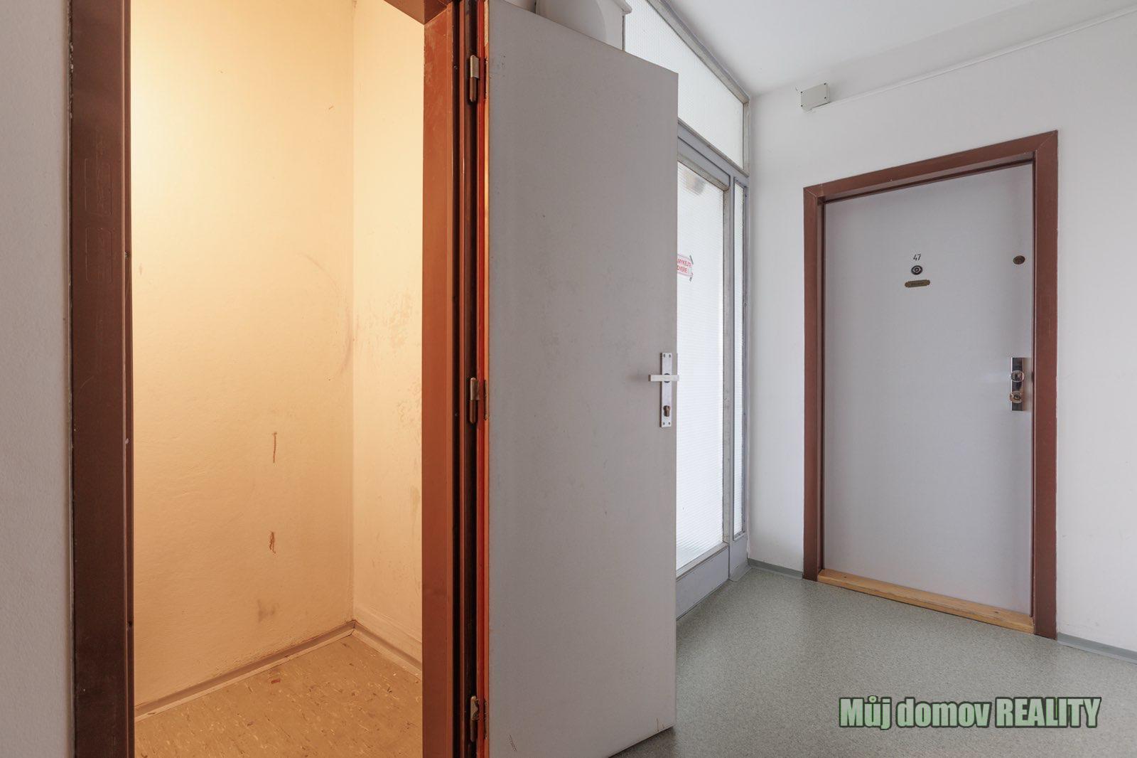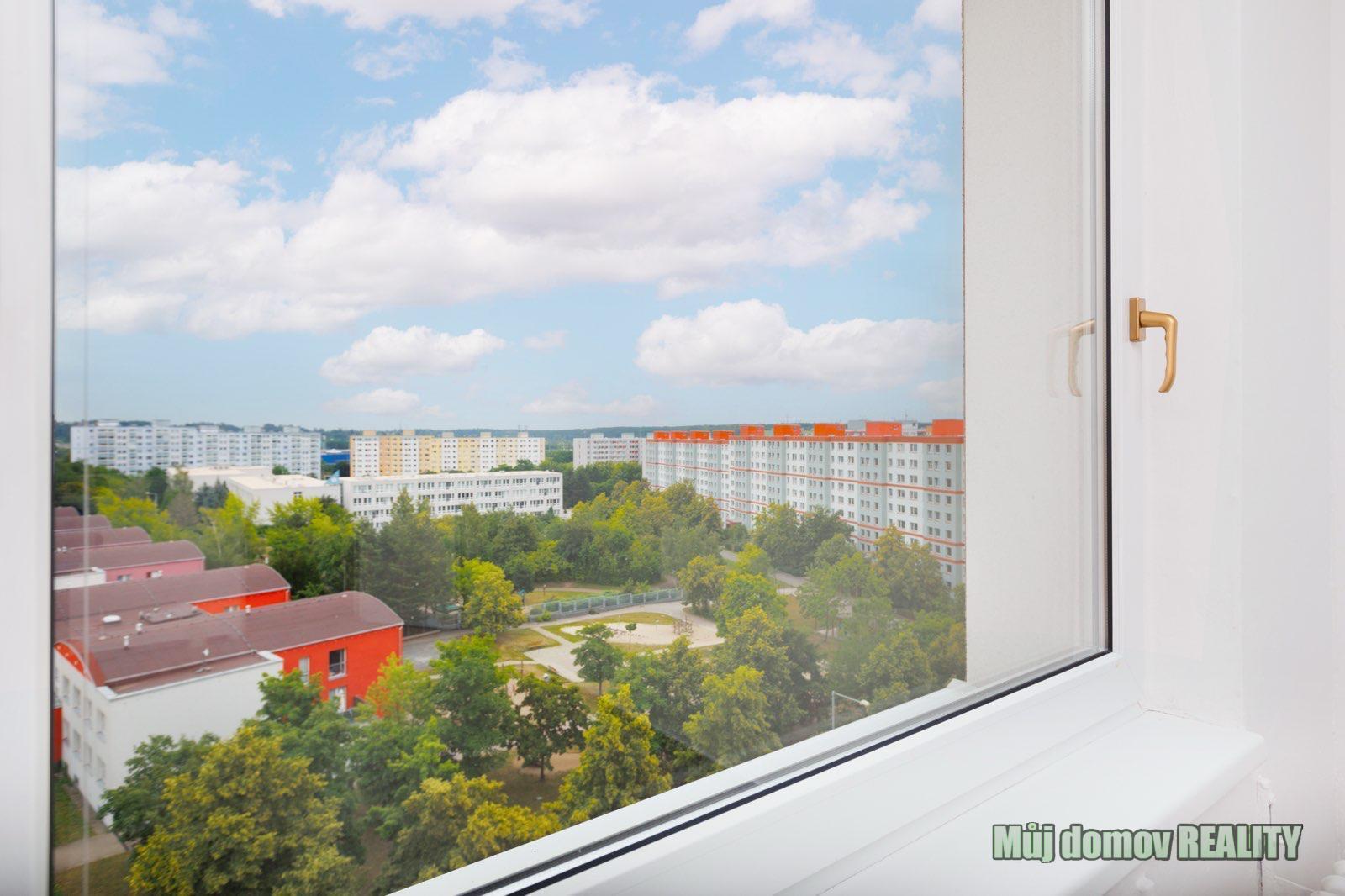 Prahy 14 Černý Most, ulice Vybíralova. K bytu náleží prostorná lodžie (3 m), sklepní kóje (2 m) a také praktická komora umístěná na stejném patře (1 m).