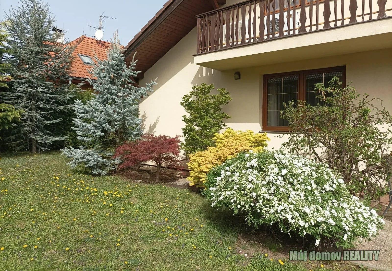 Udržovaná zahrada s terasou, venkovním posezením, ovocnými i okrasnými stromy (třešně, višně, meruňky, hrušně) poskytuje maximální soukromí a příjemné prostředí pro relaxaci.