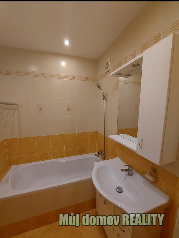 Koupelna je vybavena vanou, umyvadlem se skříňkami, vyhřívaným zrcadlem a novou pračkou. WC má bidetovou spršku s regulací teploty vody.
