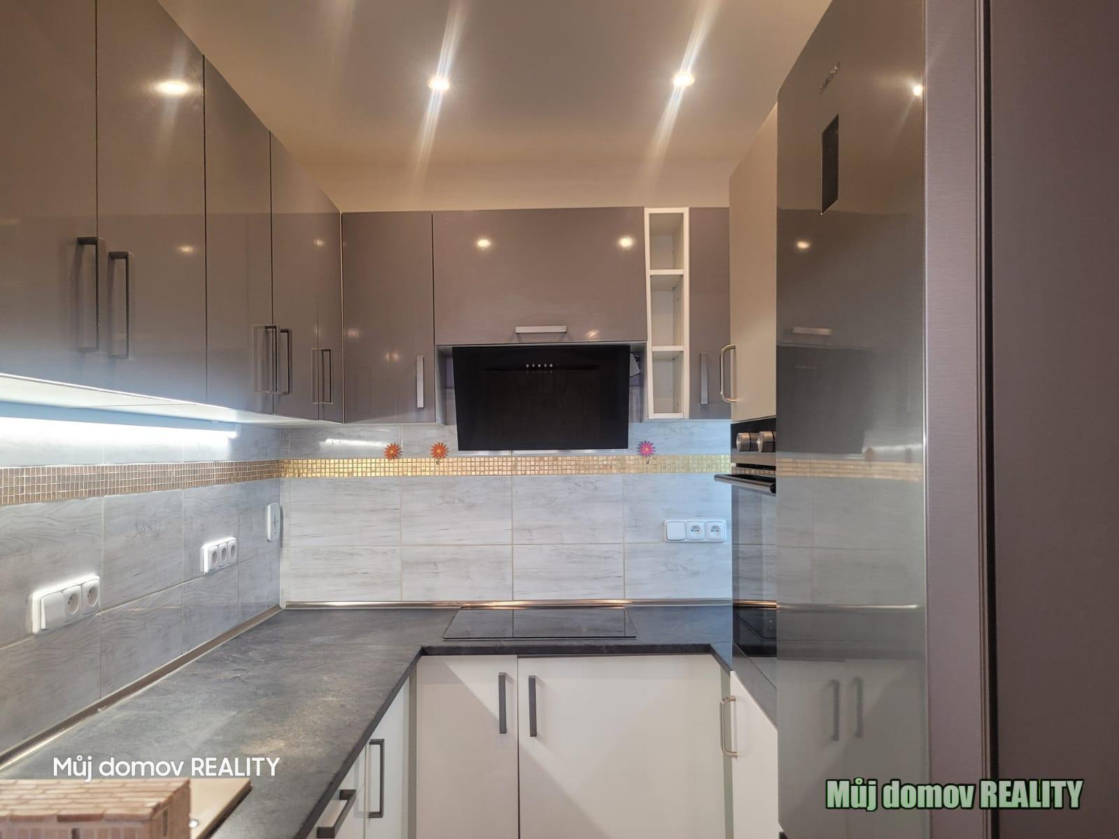 Byt je částečně zařízený k dispozici je plně vybavená kuchyňská linka, lednice, sporák, trouba a dostatek úložných prostor. Chybí pouze postel a sedací souprava.