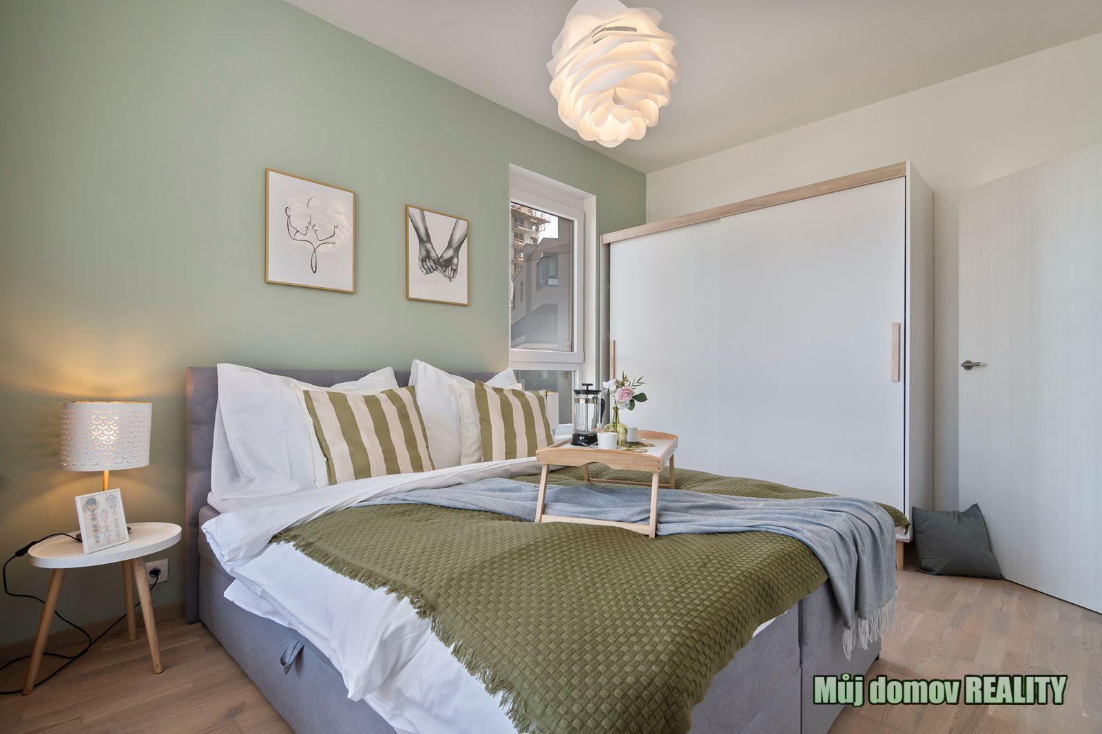**Pronájem plně vybaveného bytu 2+kk s balkonem, parkovacím stáním a sklepem Praha 9, Hloubětín**